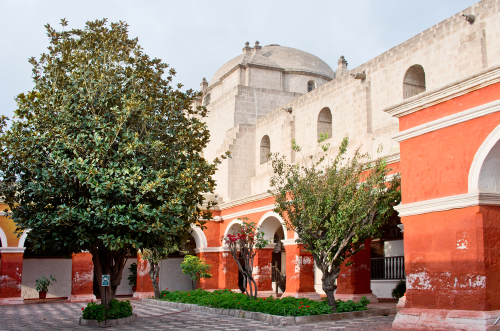 Una de las características más bonitas de la arquitectura del monasterio es el origen de los materiales con los que se levantaron sus muros. Para construir este lugar, los obreros utilizaron los famosos sillares blanco y rosado de la ciudad de Arequipa, provenientes de dos de sus principales volcanes: el Chachani y el Misti. Así, las técnicas de construcción traídas por los españoles se mezclaron con la piedra típica del lugar para crear una auténtica obra de arte de la arquitectura colonial de Perú.